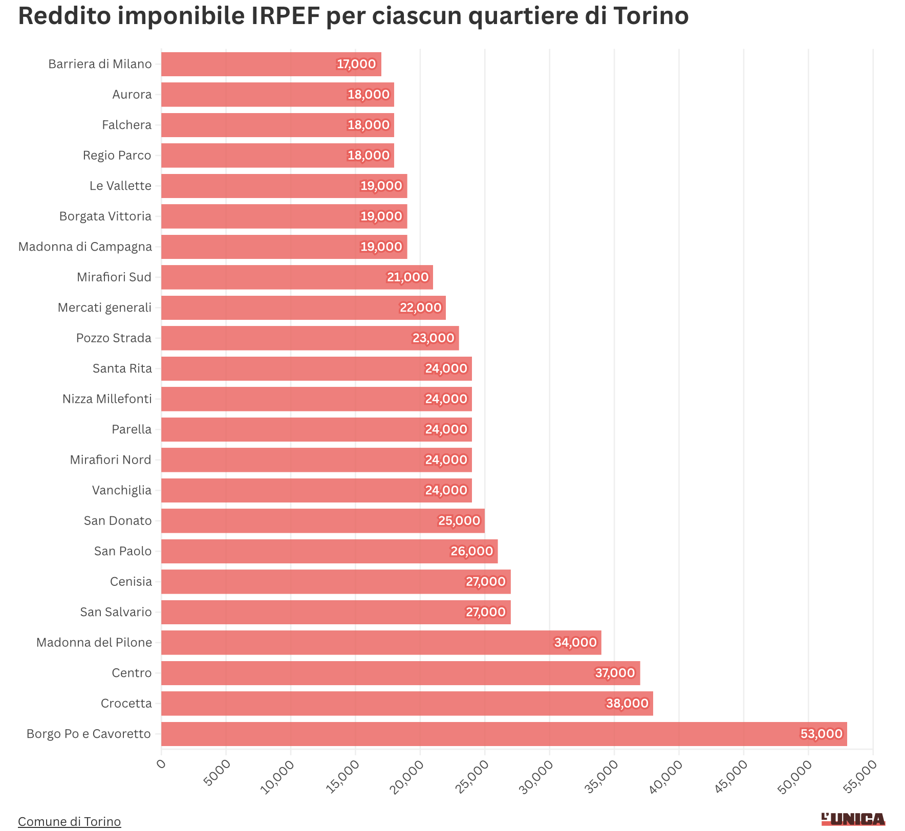 A Barriera di Milano, il reddito imponibile IRPEF per abitante – cioè la parte del reddito dichiarato su cui viene calcolata l’imposta sul reddito delle persone fisiche – è il più basso di Torino: 17 mila euro pro capite, circa un terzo rispetto alla media del quartiere cittadino più ricco, quello di Borgo Po e Cavoretto.