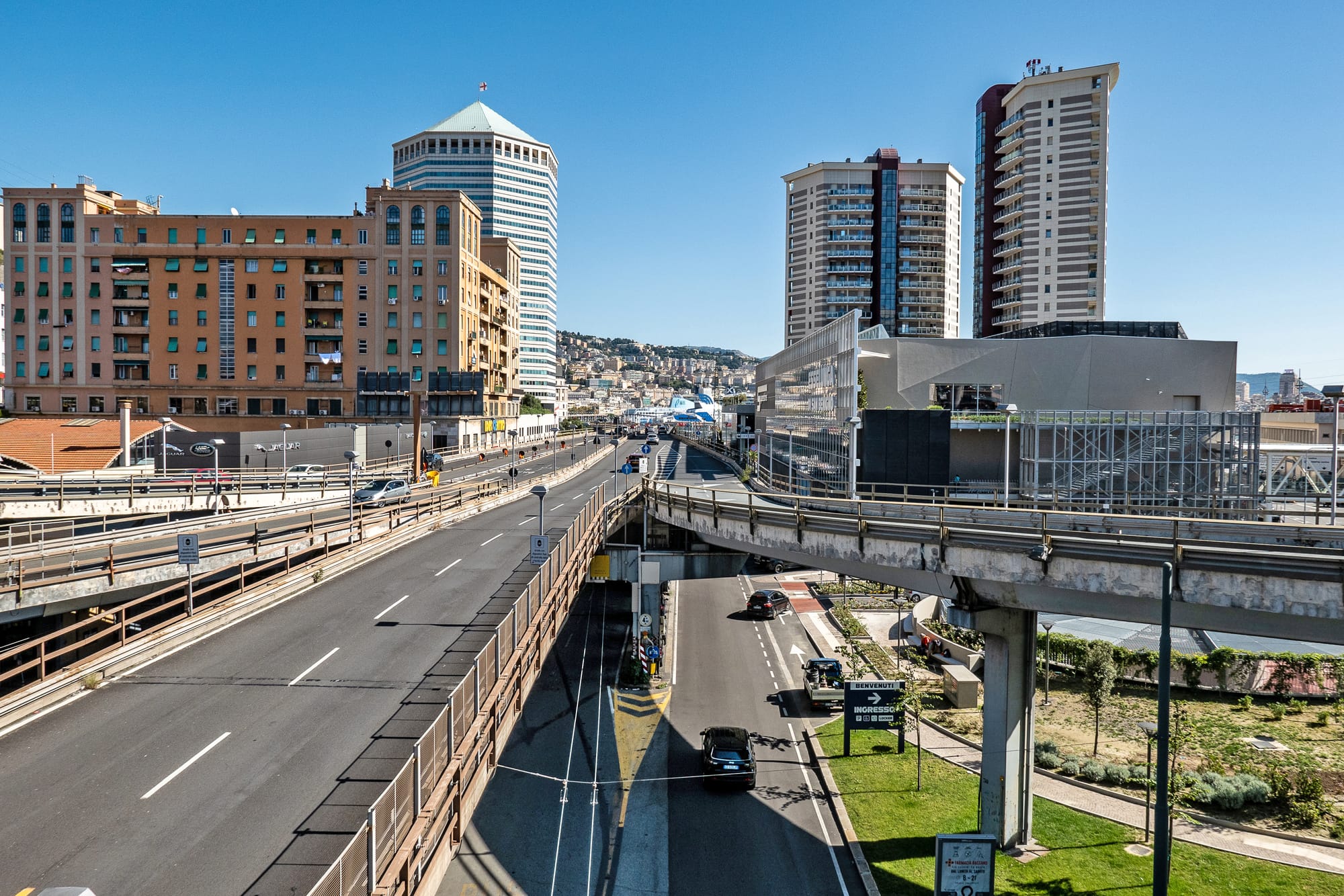 Allora perché non continuare a utilizzare la sopraelevata come arteria di scorrimento veloce del traffico? Di conseguenza, via Gramsci – aperta solo ad autobus e fornitori – avrebbe bisogno di due corsie, e il resto dello spazio sarebbe da destinare allo svago e a nuove piantumazioni. «Questa sostanziale riorganizzazione dei flussi di traffico potrebbe dare seguito, a cascata, a una serie di altre opere, come la definitiva strutturazione di un terminal intermodale a Principe, il ridisegno di piazza della Commenda, la cancellazione del sottopasso di Caricamento».