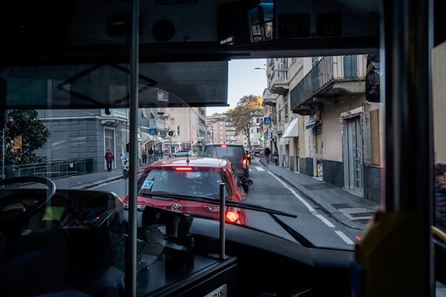 L’autista alla fermata successiva perde un po’ del suo aplomb quando la porta automatica centrale del bus ha un attimo di incertezza prima di richiudersi correttamente e far spegnere la lucina rossa sulla tastiera accanto al monitor che la inquadra, sulla destra della plancia. Poi ripete l’operazione e tutto si sistema, umore compreso.